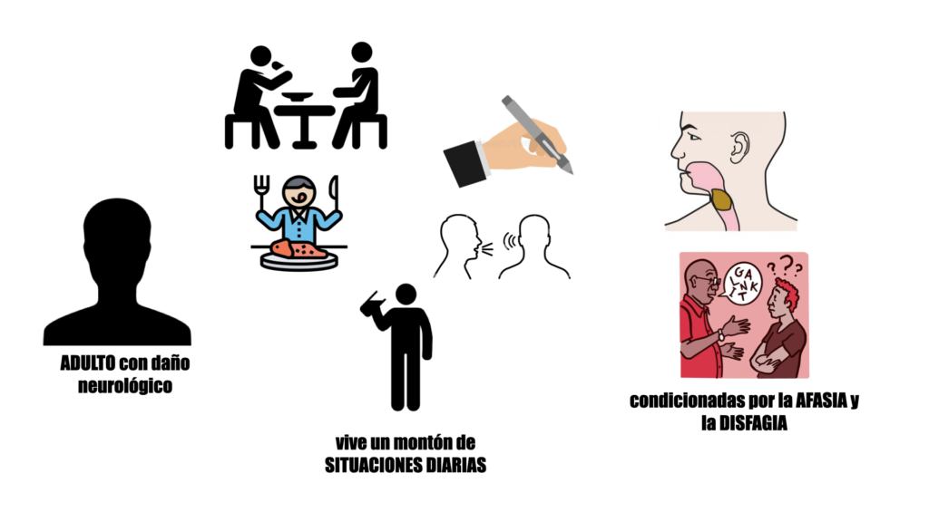 Existen momentos en los que la salud se puede ver amenazada y el ser humano se encuentra en una condición en la que aparecen restricciones a la hora de realizar actividades cotidianas. Palabras desconocidas hasta ese momento como pueden ser Afasia o Disfagia retumban en la persona cada día al levantarse. Estas palabras, que definen un cuadro clínico, están lejos de poder explicar el enorme impacto que tienen en la vida de una persona cuando aparecen.